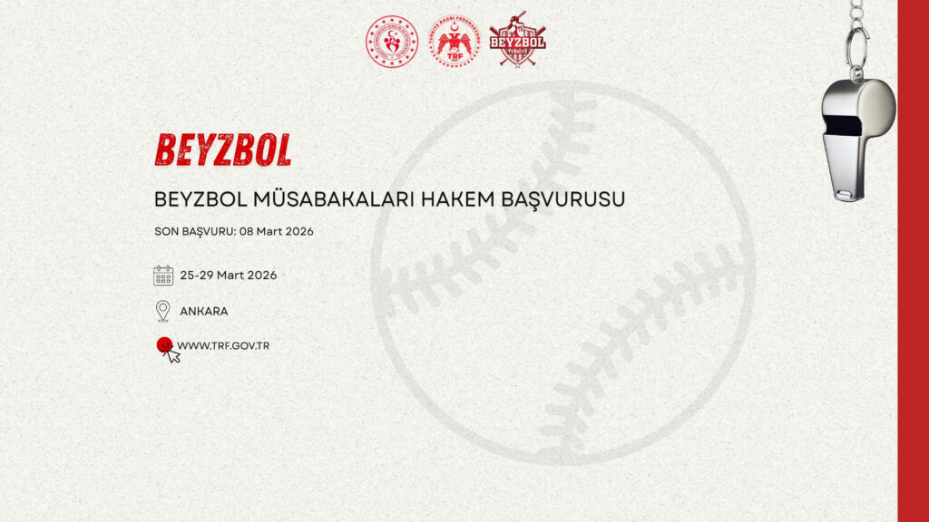 Okul sporları Beyzbol Müsabakaları 25-29 Mart 2026 tarihleri arasında Ankara ilinde yapılacaktır . Görev almak isteyen hakemlerin 8 Mart 2026 tarihi saat 17.00 ‘a kadar formu doldurmaları gerekmektedir.