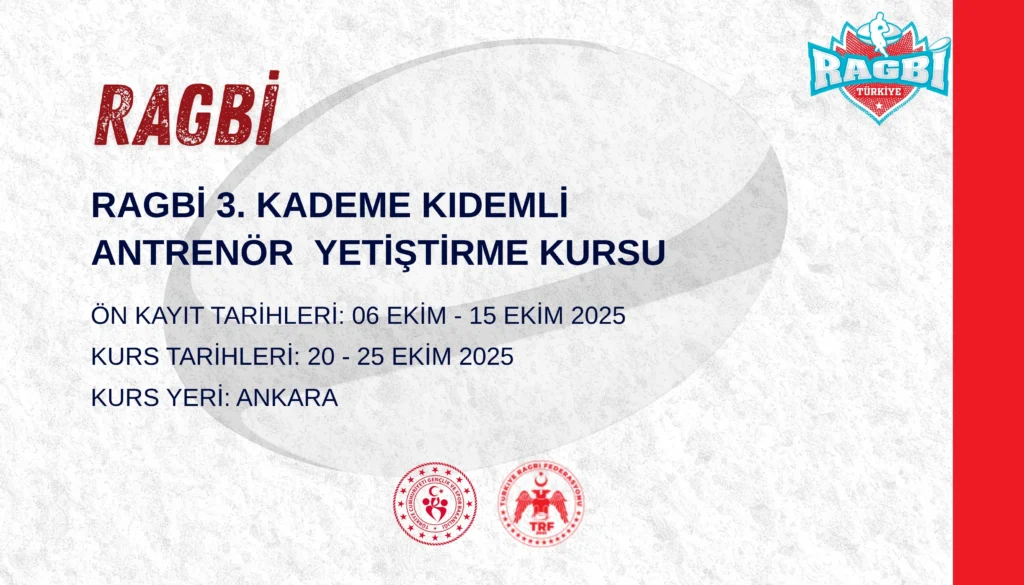 Ragbi 3. Kademe Kıdemli Antrenör Yetiştirme Kursu açılacaktır. Kurs 20.10.2025- 24.10.2025 tarihleri arasında Ankara’da gerçekleştirilecektir.