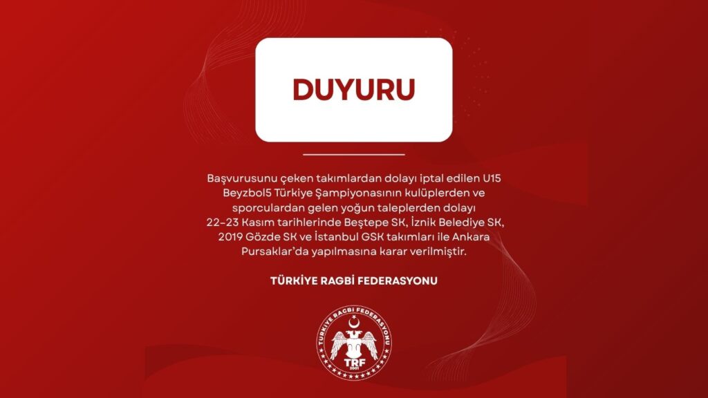 Başvurusunu çeken takımlardan dolayı iptal edilen U15 Beyzbol5 Türkiye Şampiyonasının kulüplerden ve sporculardan gelen yoğun taleplerden dolayı 22–23 Kasım tarihlerinde Beştepe SK, İznik Belediye SK, 2019 Gözde SK ve İstanbul GSK takımları ile Ankara Pursaklar’da yapılmasına karar verilmiştir