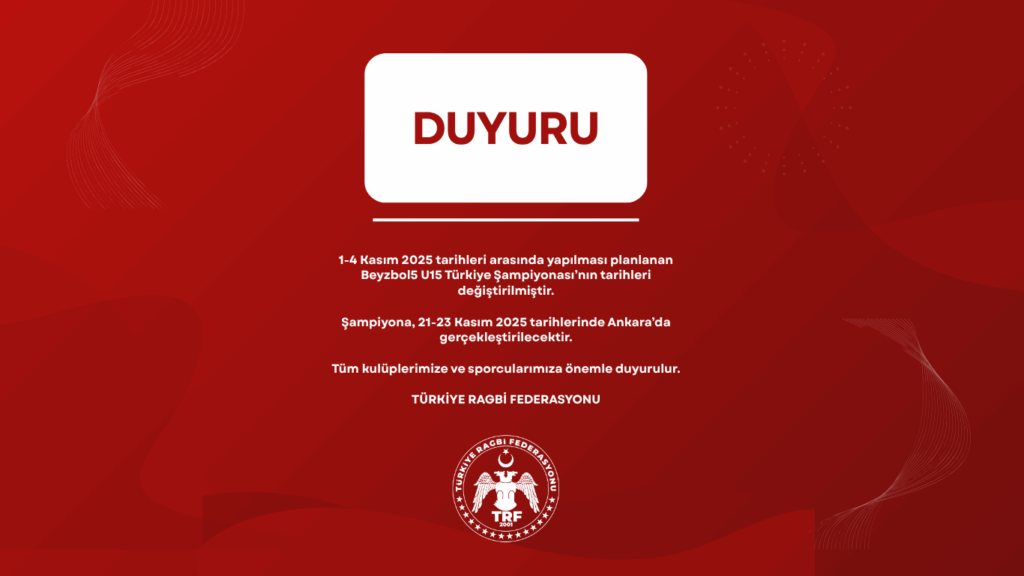 1-4 Kasım 2025 tarihleri arasında yapılması planlanan Beyzbol5 U15 Türkiye Şampiyonası’nın tarihleri değiştirilmiştir.