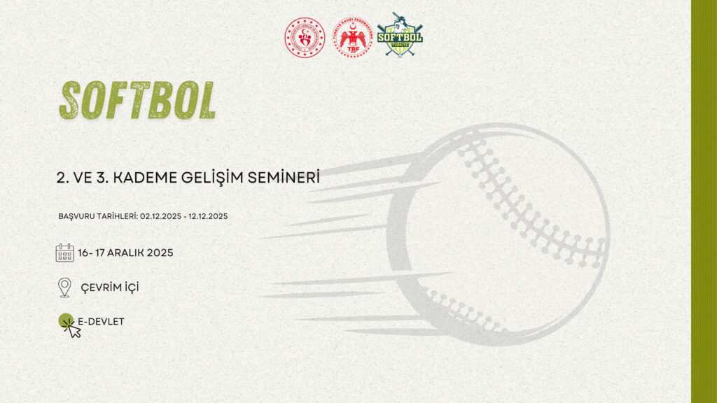 Softbol 2. ve 3. Kademe gelişim semineri gerçekleşecektir. Seminer 16.12.2025- 17.12.2025 tarihleri arasında çevrim içi gerçekleştirilecektir.