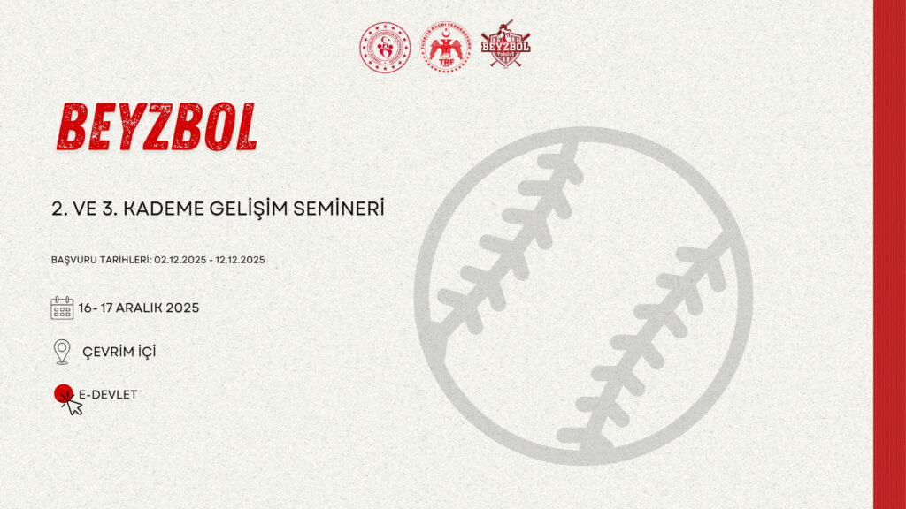 Beyzbol 2. ve 3. Kademe gelişim semineri gerçekleşecektir. Seminer 16.12.2025- 17.12.2025 tarihleri arasında çevrim içi gerçekleştirilecektir.
