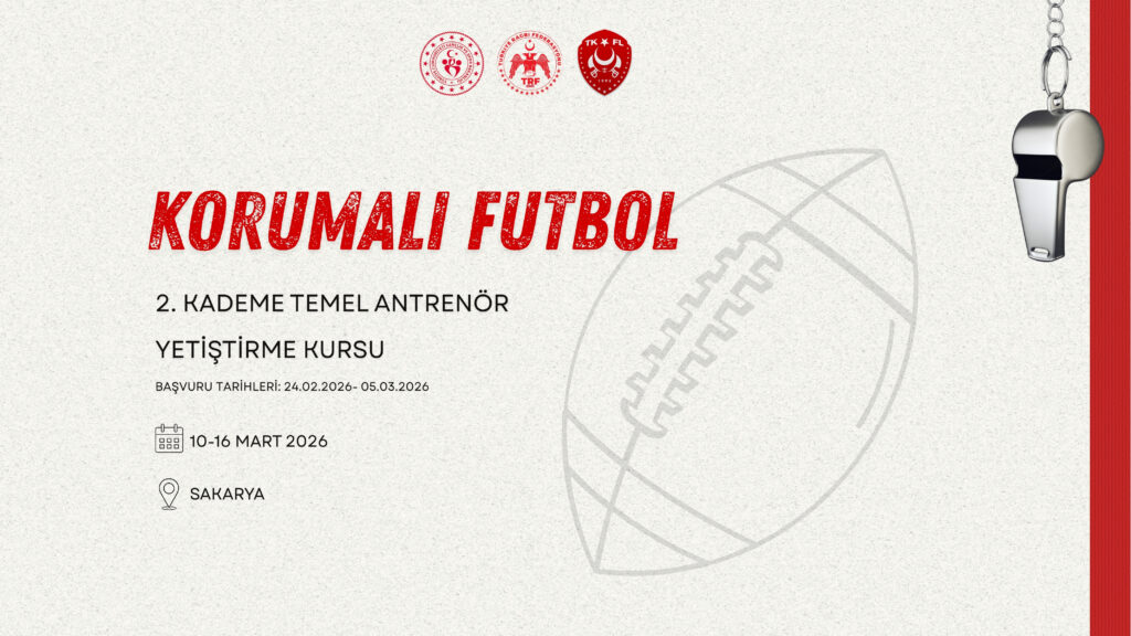 Korumalı Futbol 2. Kademe Temel Antrenör Yetiştirme Kursu açılacaktır. Kurs 10.03.2026-16.03.2026 tarihinde Sakarya’da gerçekleştirilecektir.