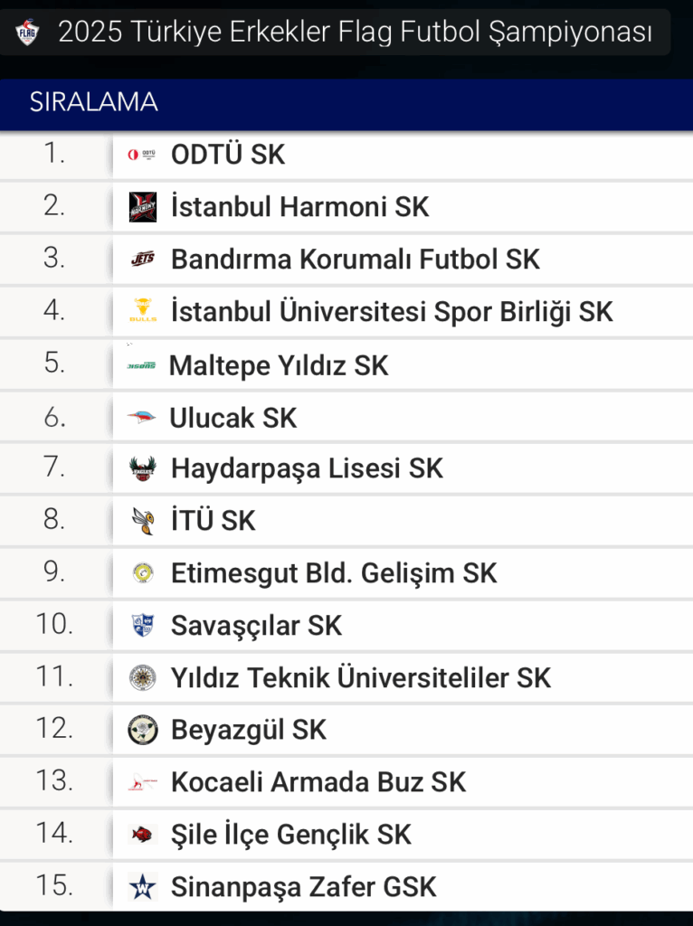 • 2025 Flag Futbol Büyük Erkekler Türkiye Şampiyonası
